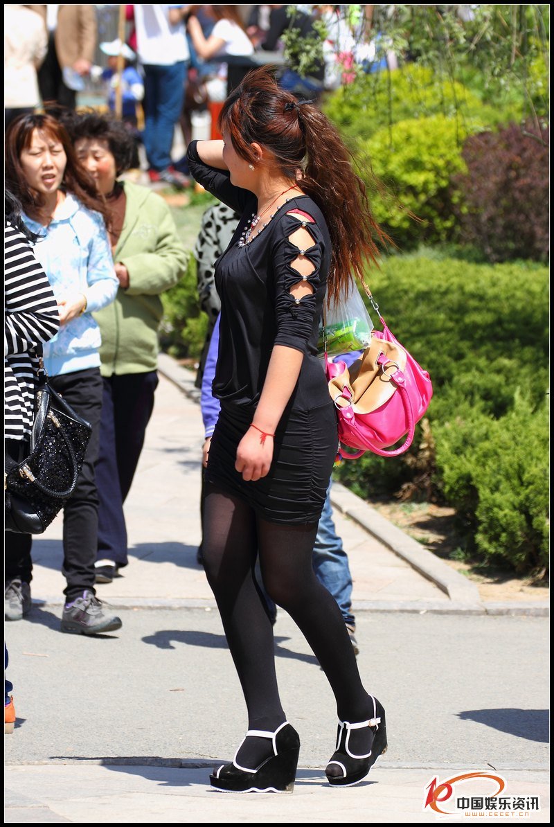 公園里的緊身裙黑絲妹子身材飽滿(mǎn)