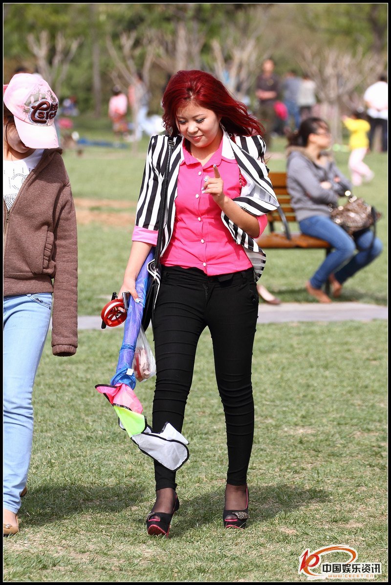 公園里放風(fēng)箏的修身長(cháng)褲美女