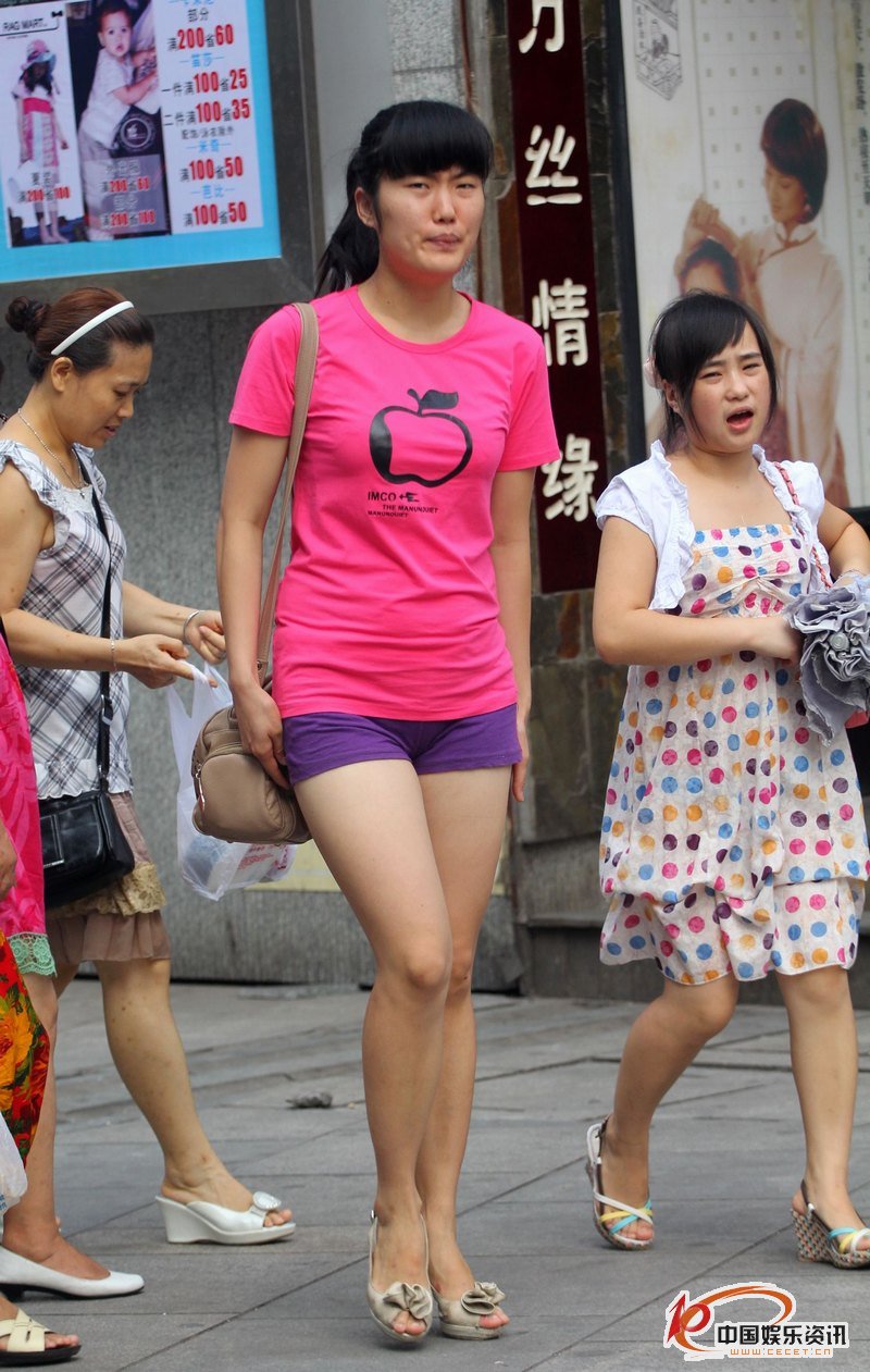 粉色T恤熱褲妹子修長(cháng)飽滿(mǎn)的美腿