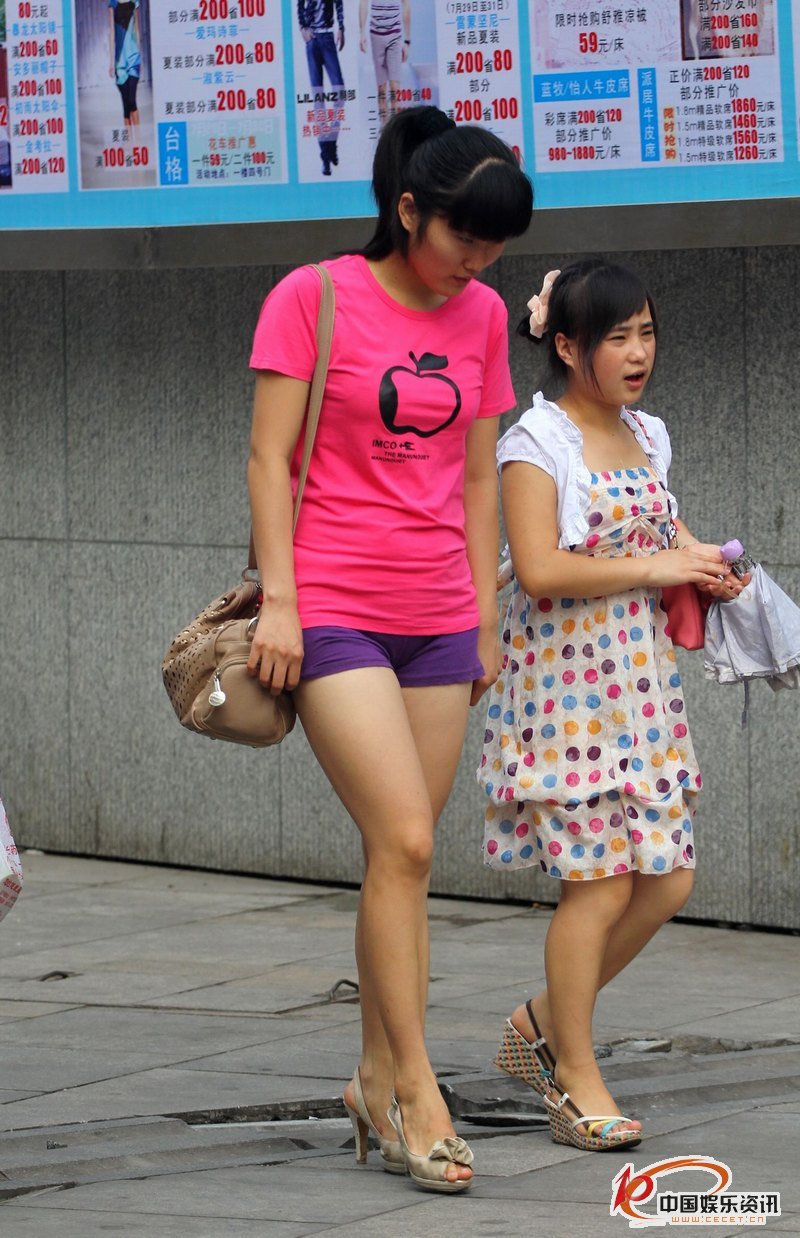 粉色T恤熱褲妹子修長(cháng)飽滿(mǎn)的美腿