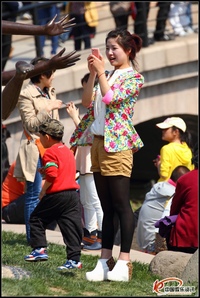 碎花衫短褲黑絲坡高跟美眉嬌艷明媚