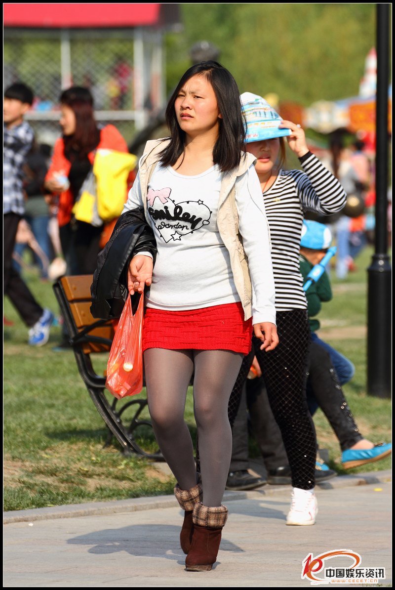 公園里抓拍的紅色短裙灰絲熟婦