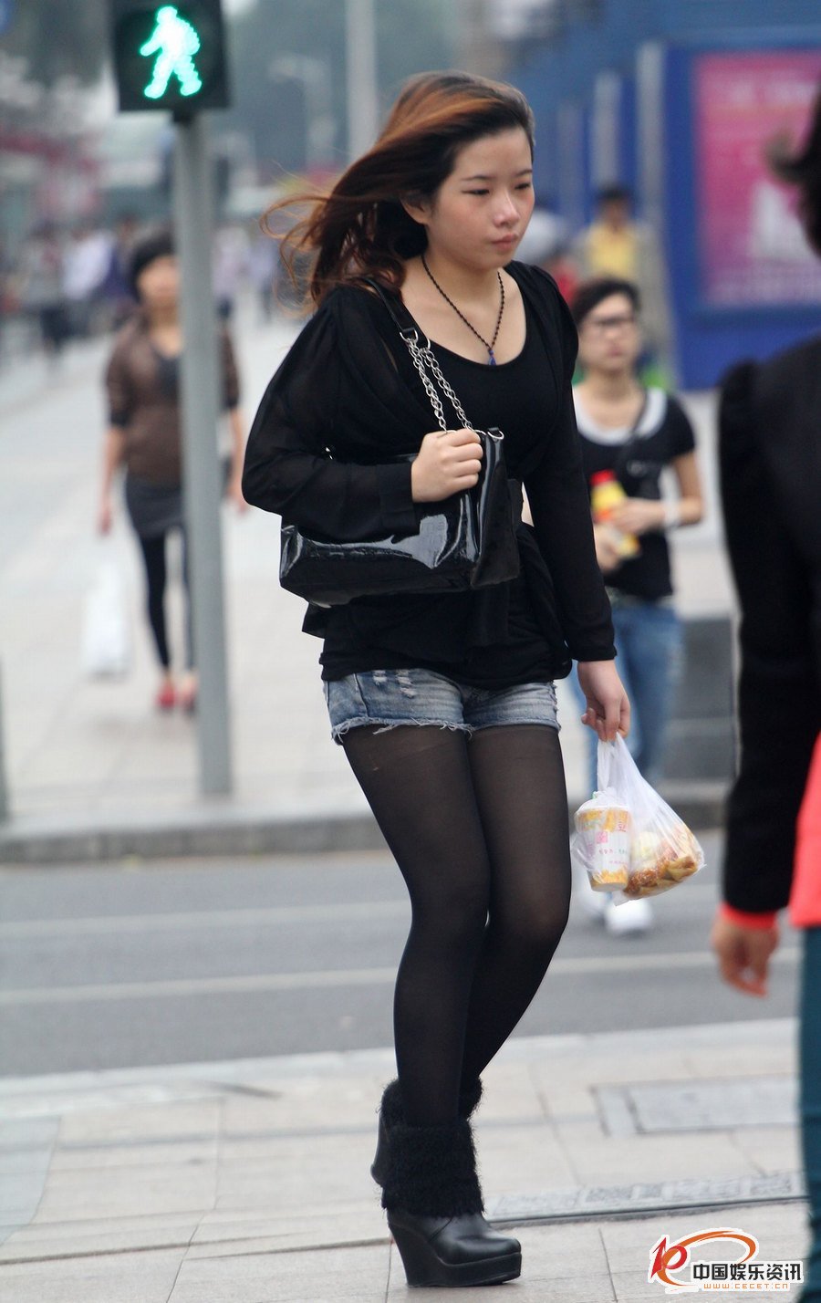 黑絲熱褲毛茸短靴妹妹纖細的美腿