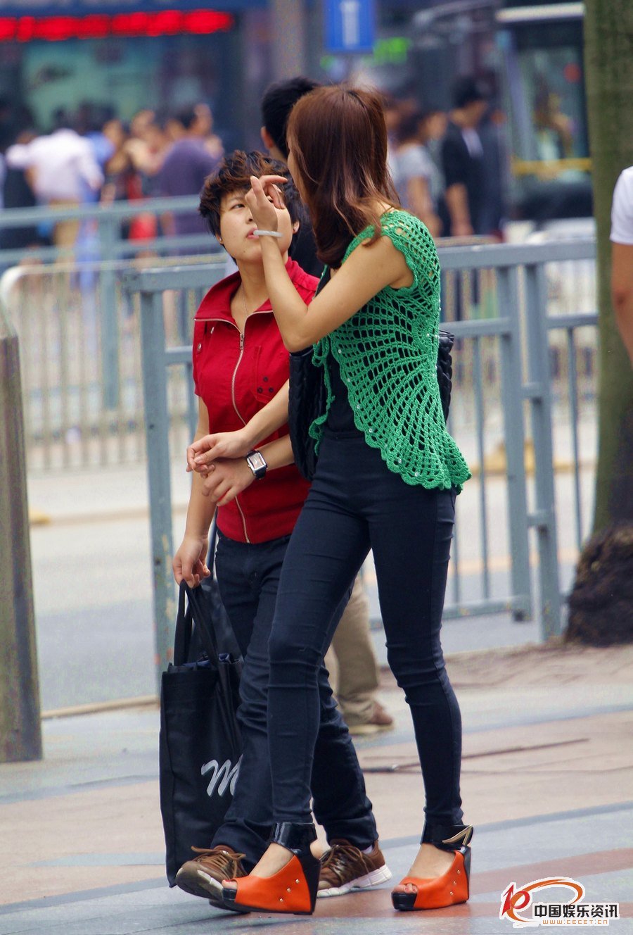 緊身牛仔褲高挑美女修長(cháng)的身材