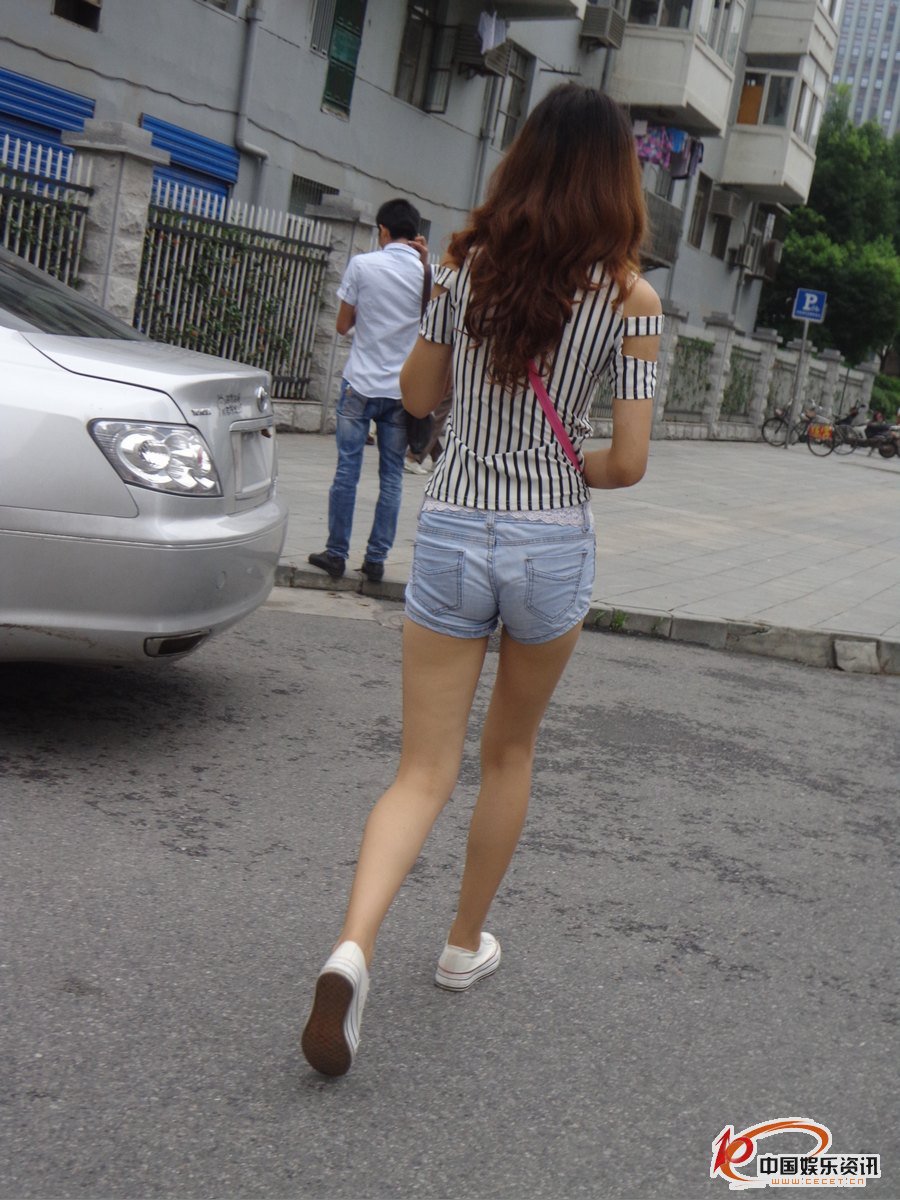牛仔熱褲靚妹細長(cháng)美腿苗條的身材