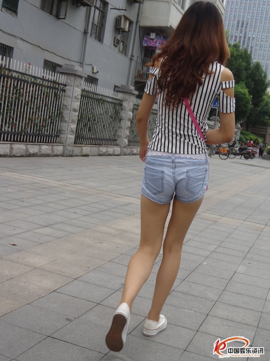 牛仔熱褲靚妹細長(cháng)美腿苗條的身材