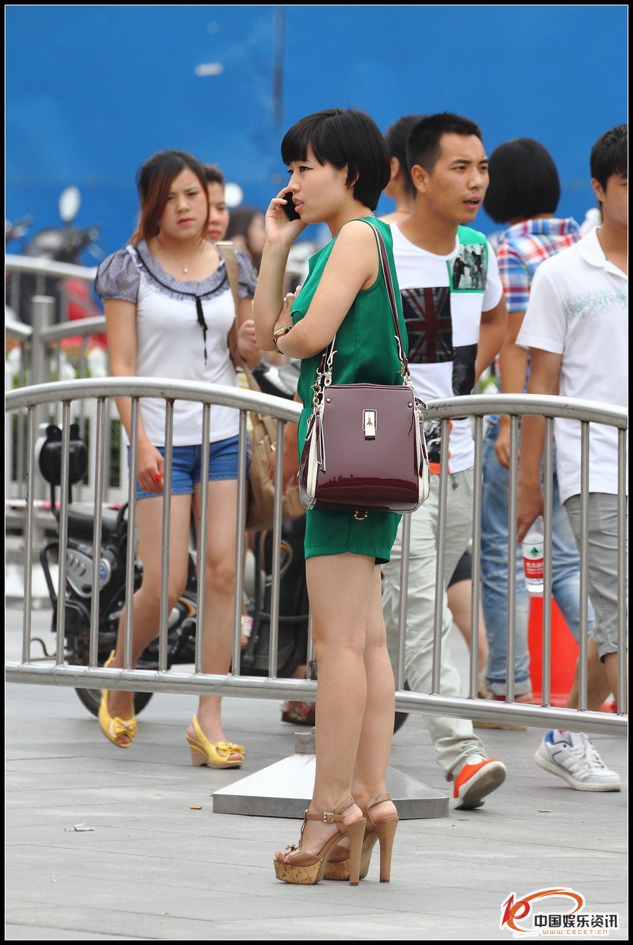 墨綠色連體衣裸腿高跟鞋短發(fā)美女