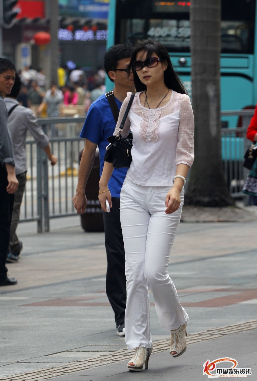 東風(fēng)路街拍的緊身長(cháng)褲時(shí)尚美女