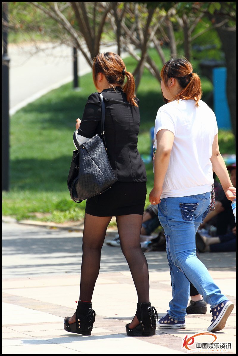 包臀超短裙妹子閃亮的絲腿細膩嫩滑