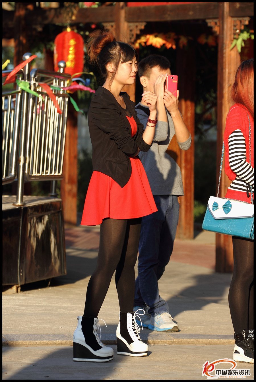 紅色連衣裙黑絲美女雙腿細長(cháng)