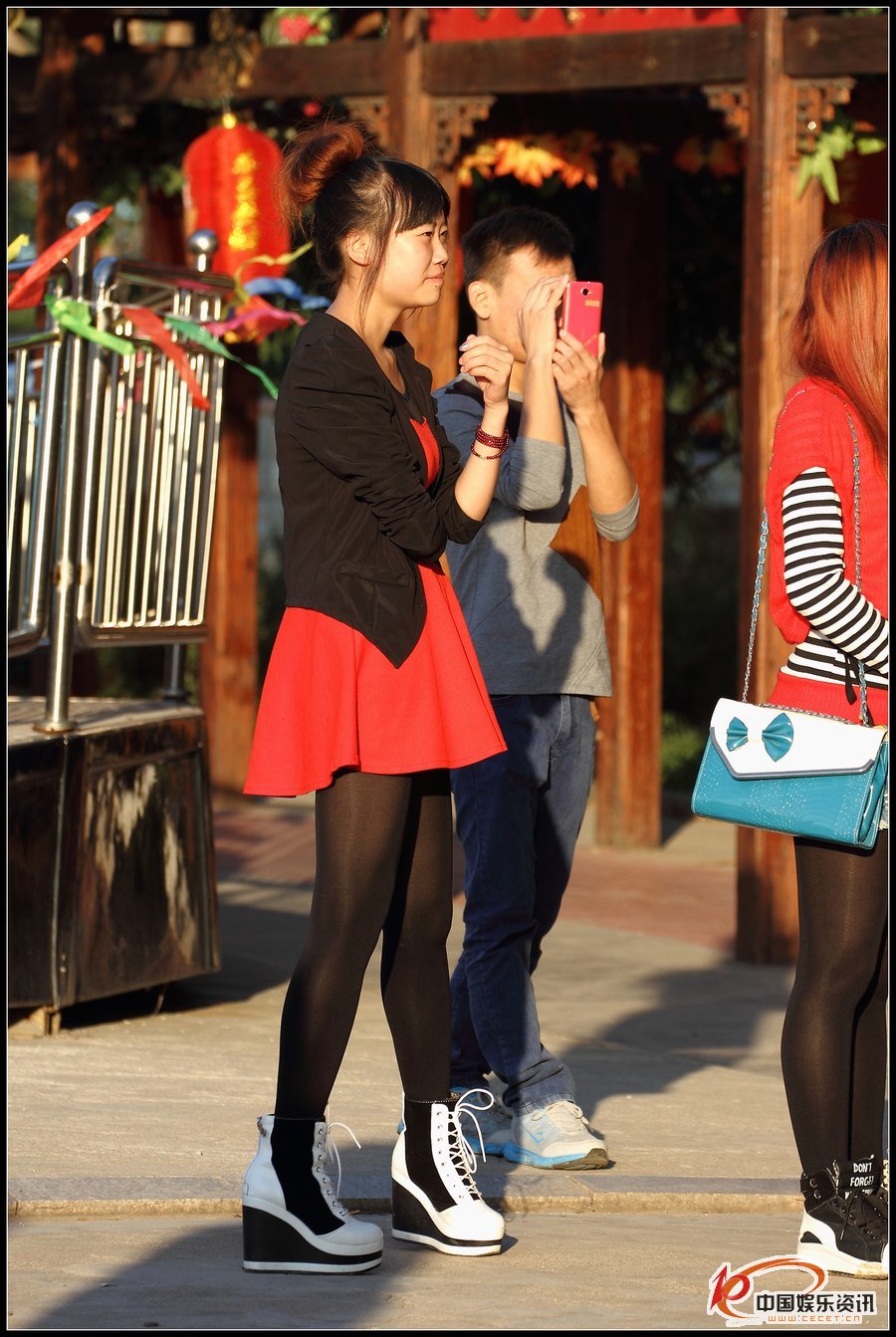 紅色連衣裙黑絲美女雙腿細長(cháng)