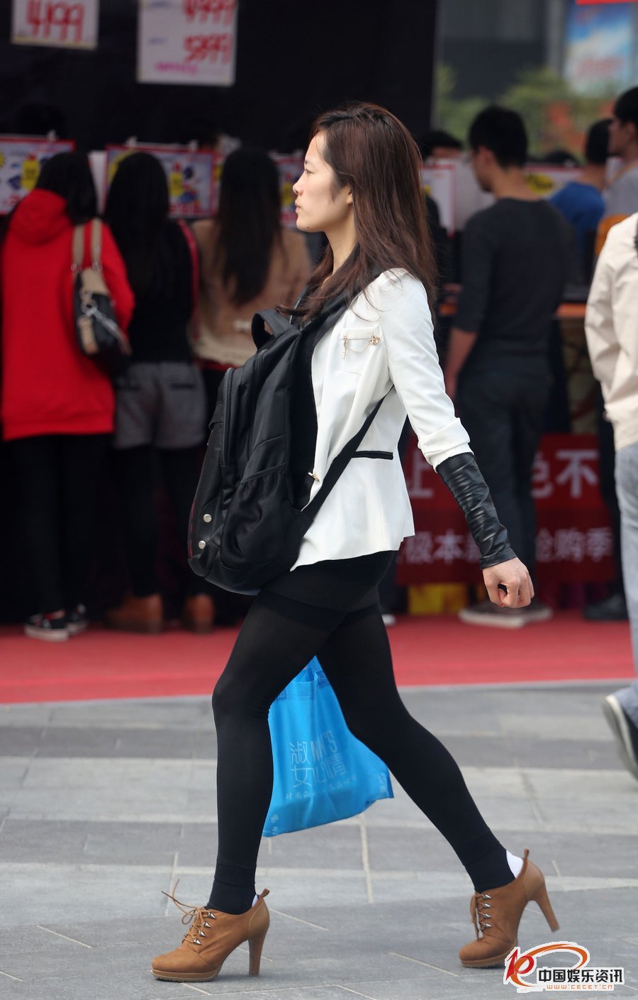 黑色緊身褲美女步伐矯健氣質(zhì)高雅