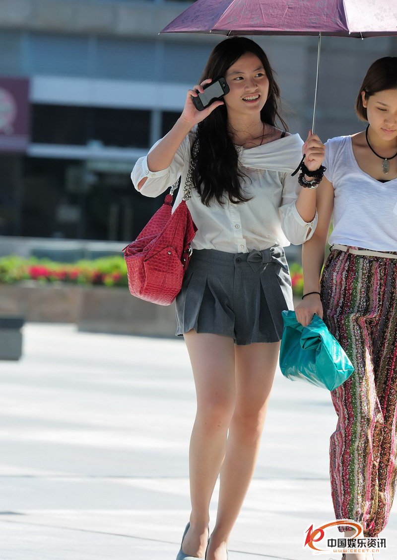 文廟廣場(chǎng)街拍的短裙白皙美女