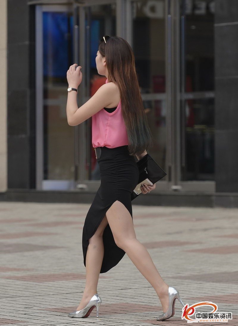 街拍的斜開(kāi)叉長(cháng)裙時(shí)尚美女