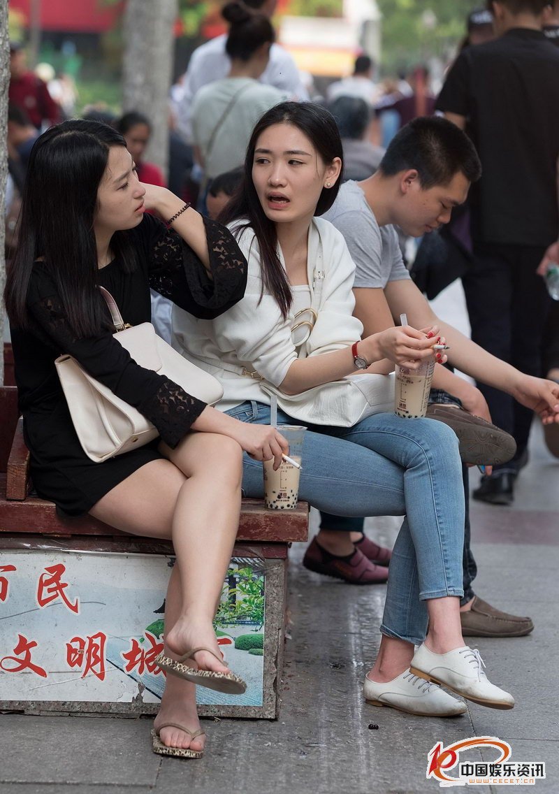 街拍路邊休息的兩個(gè)時(shí)尚美女