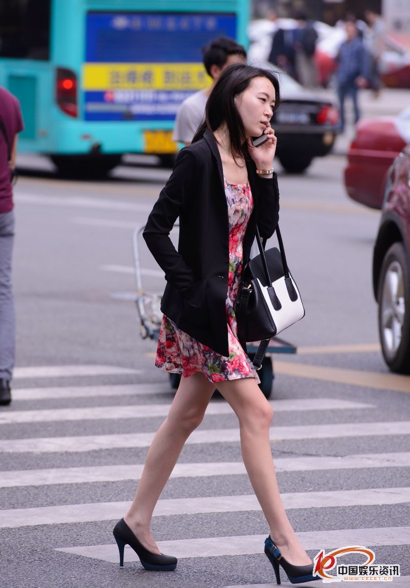 街拍過(guò)馬路的長(cháng)細腿苗條美少婦