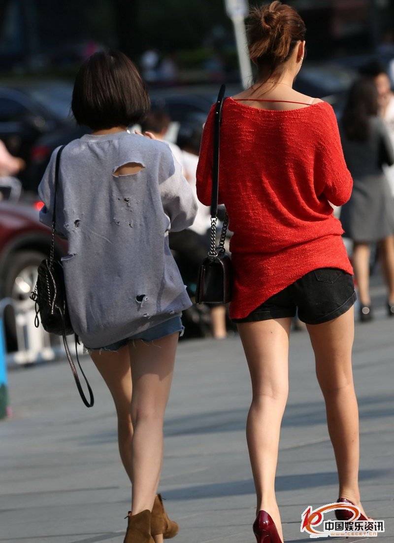 街拍的兩個(gè)白嫩美腿短褲妹子