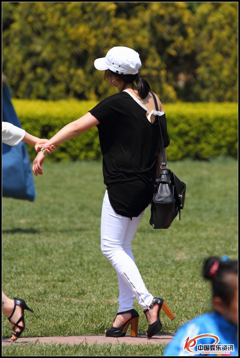 公園草坪抓拍的修身長(cháng)褲美女