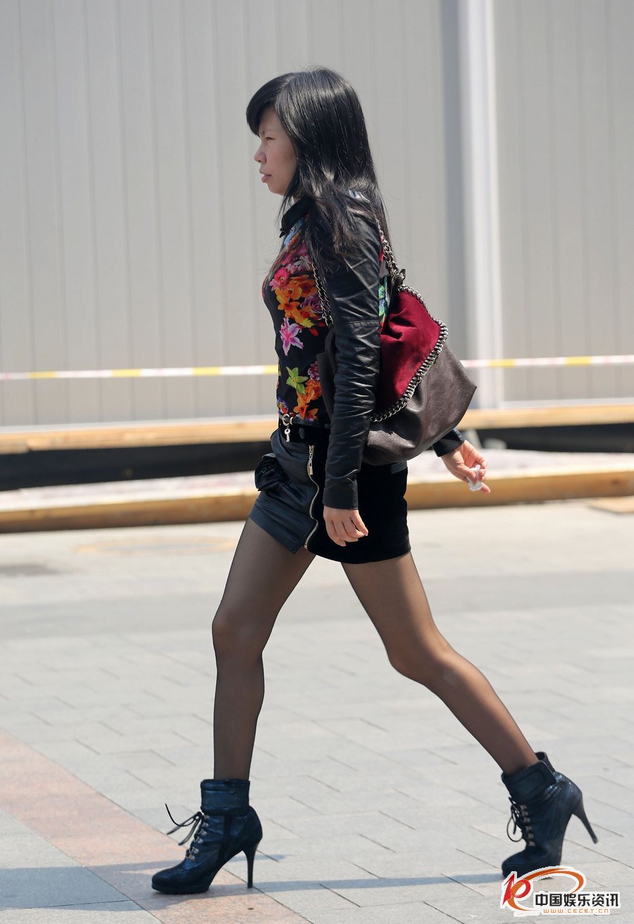 街拍的皮質(zhì)短裙黑絲風(fēng)情少婦
