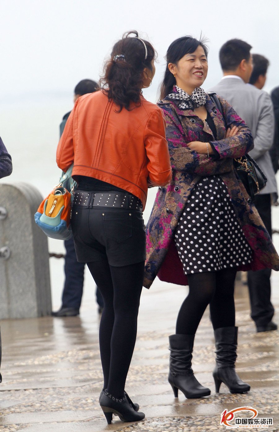 湖邊抓拍的皮短褲黑絲少婦