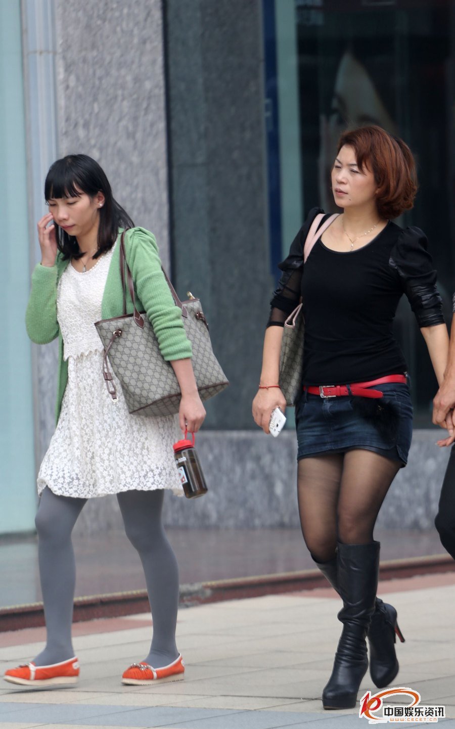 街拍牛仔短裙黑絲長(cháng)靴美少婦
