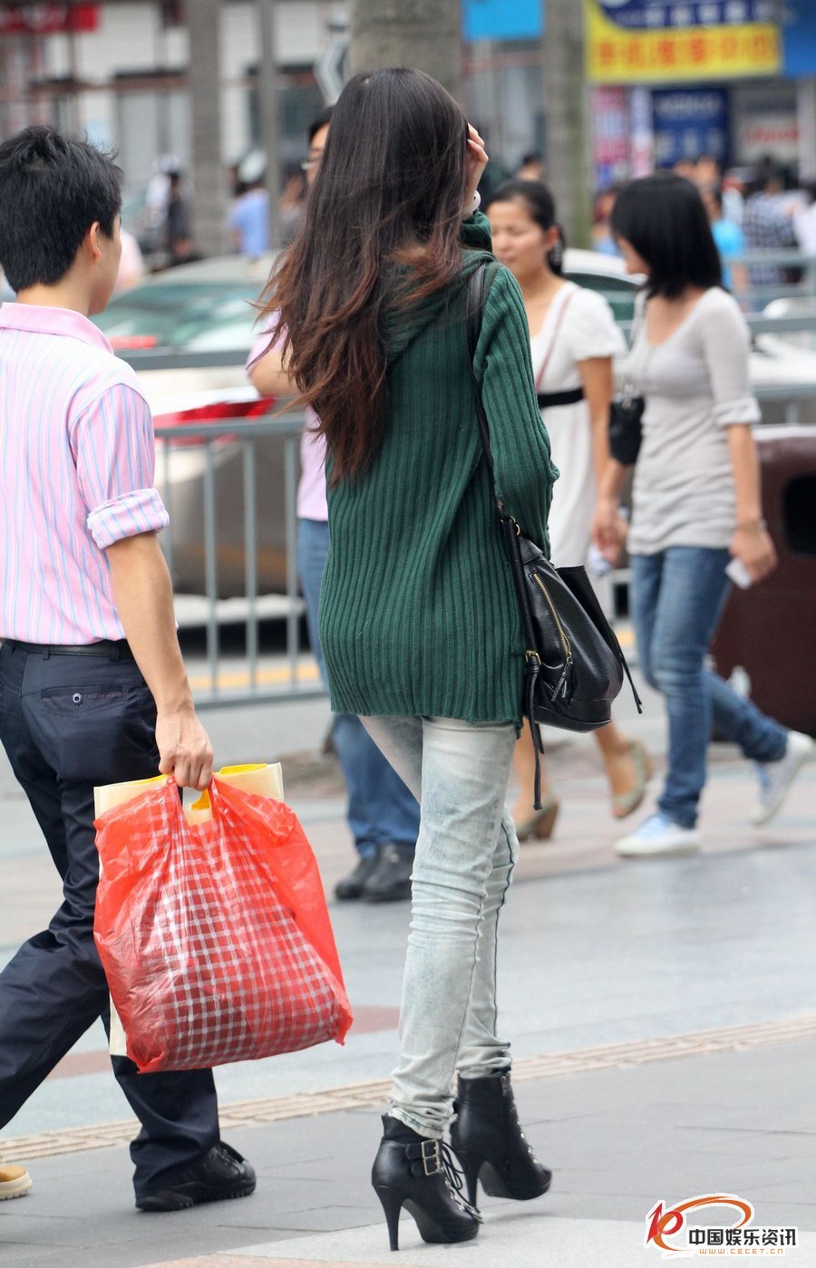街拍的牛仔褲骨感長(cháng)腿美眉