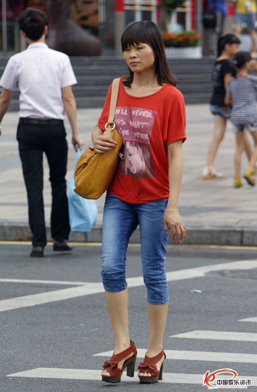 街拍過(guò)馬路的七分牛仔褲妹子