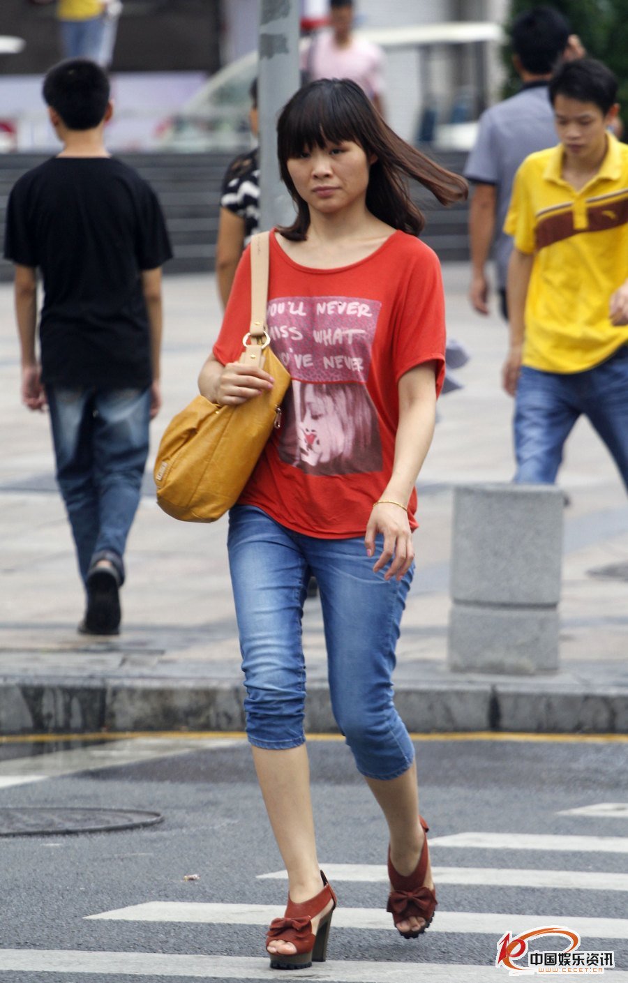 街拍過(guò)馬路的七分牛仔褲妹子