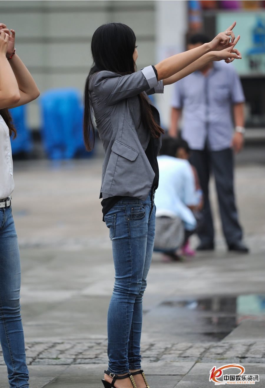 愛(ài)民廣場(chǎng)街拍的牛仔褲長(cháng)發(fā)姐姐