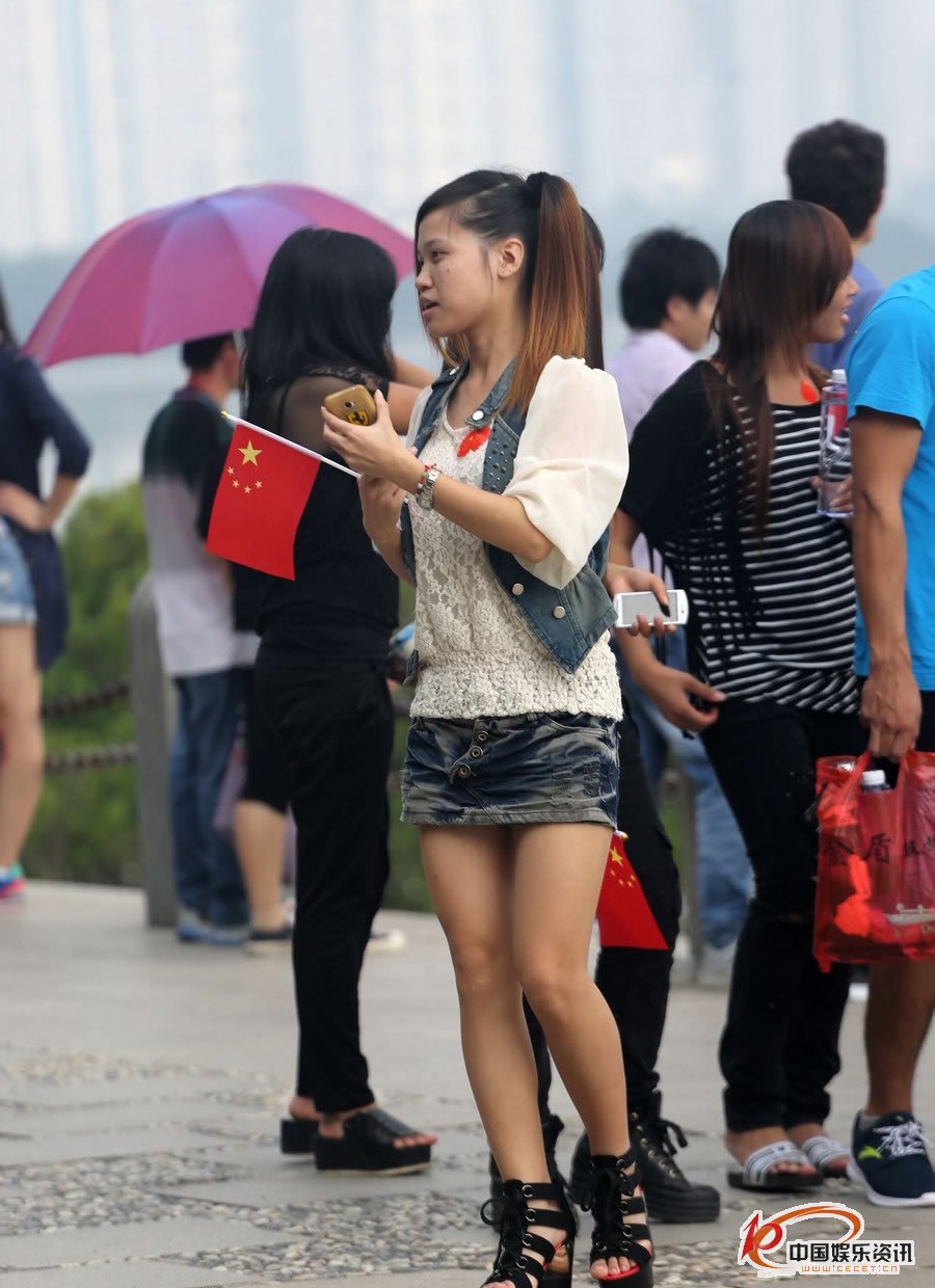 湖邊抓拍的牛仔短褲裙妹妹