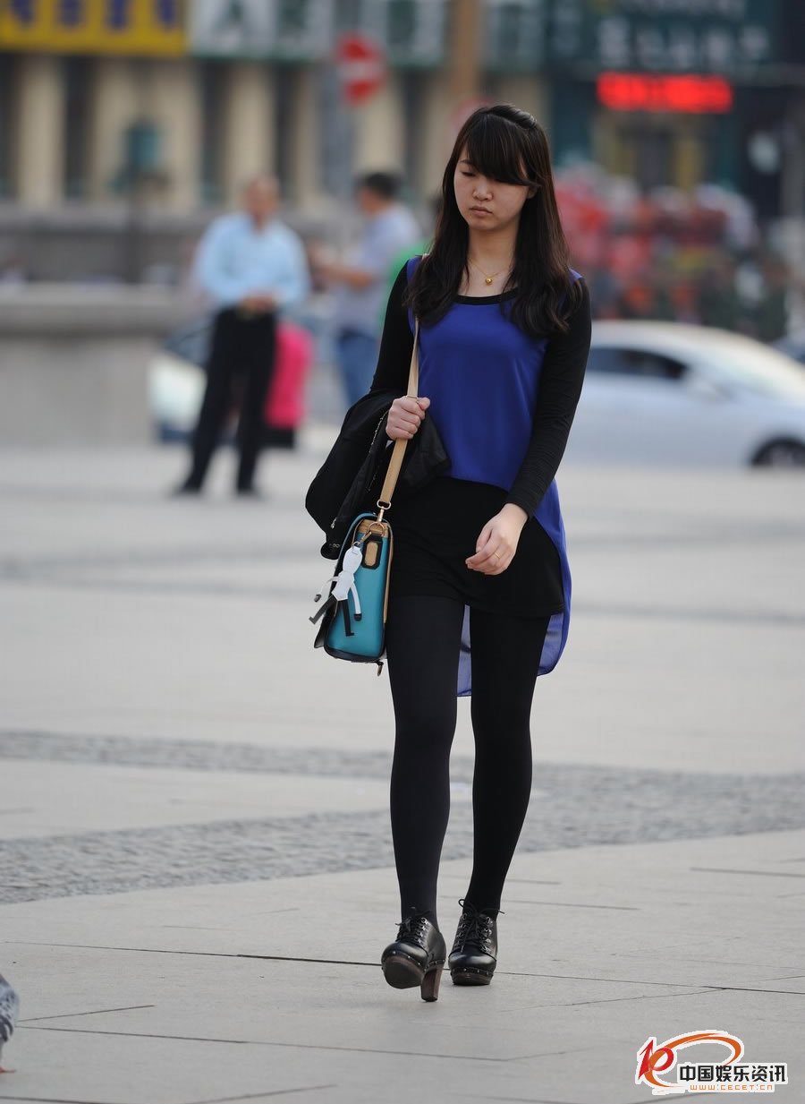 廣場(chǎng)街拍的長(cháng)衫厚黑絲美女