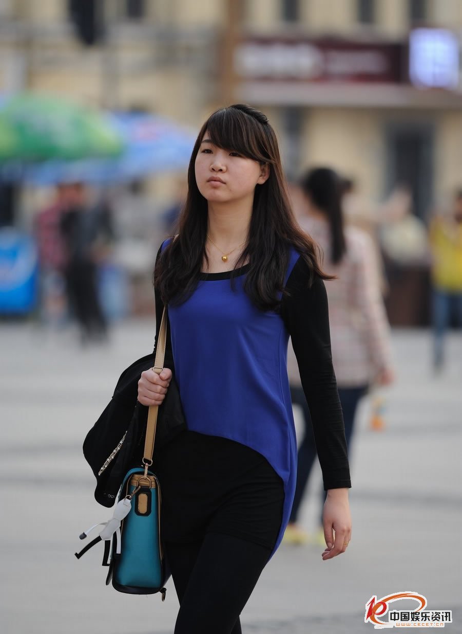 廣場(chǎng)街拍的長(cháng)衫厚黑絲美女