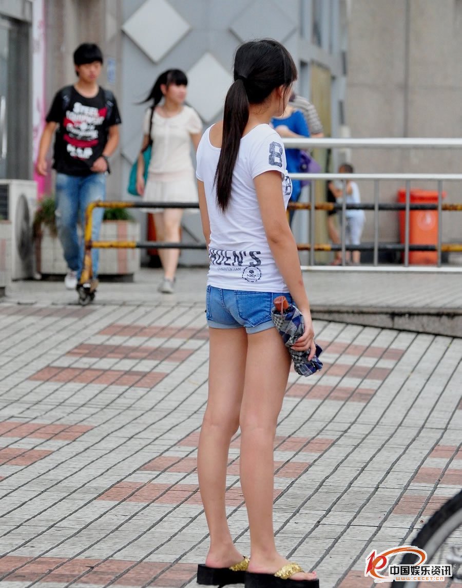 街拍的短褲長(cháng)細腿馬尾辮女孩