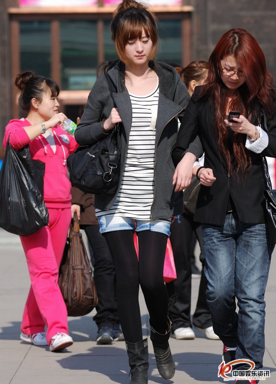 街拍牛仔短褲黑絲襪稚嫩美眉