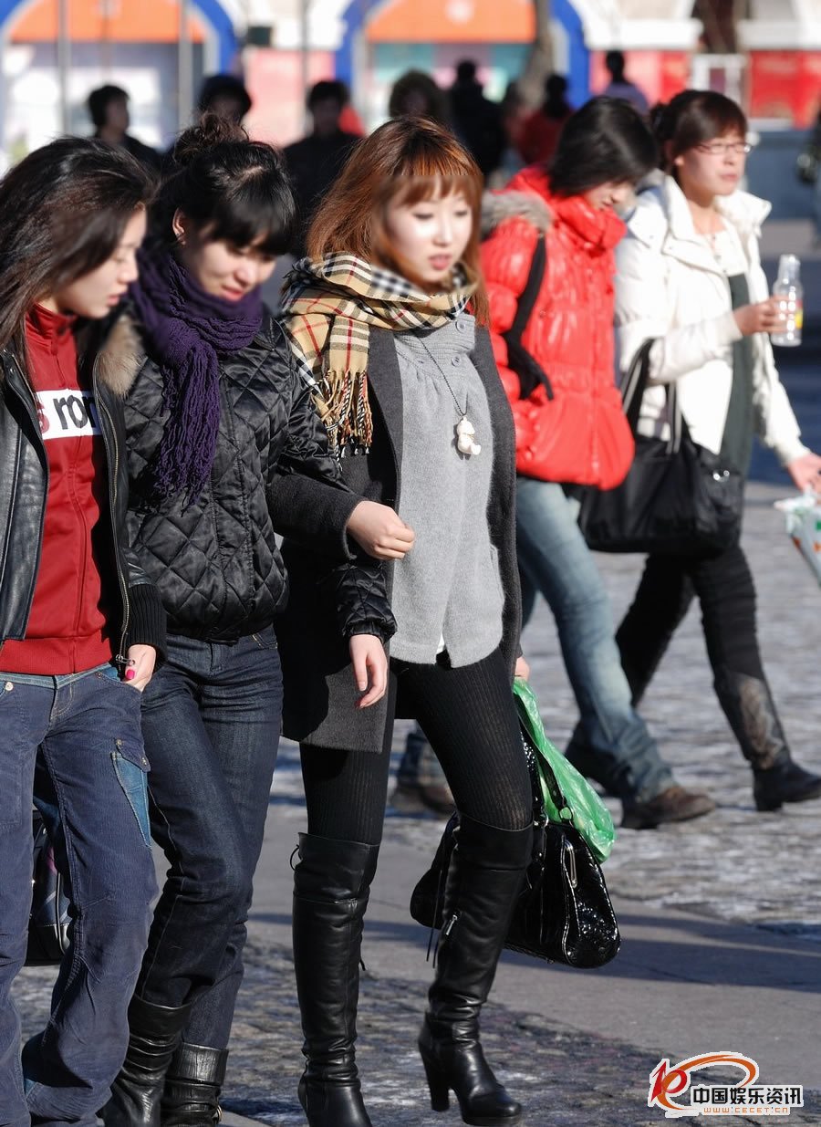 東風(fēng)路街拍的打底褲長(cháng)靴美女
