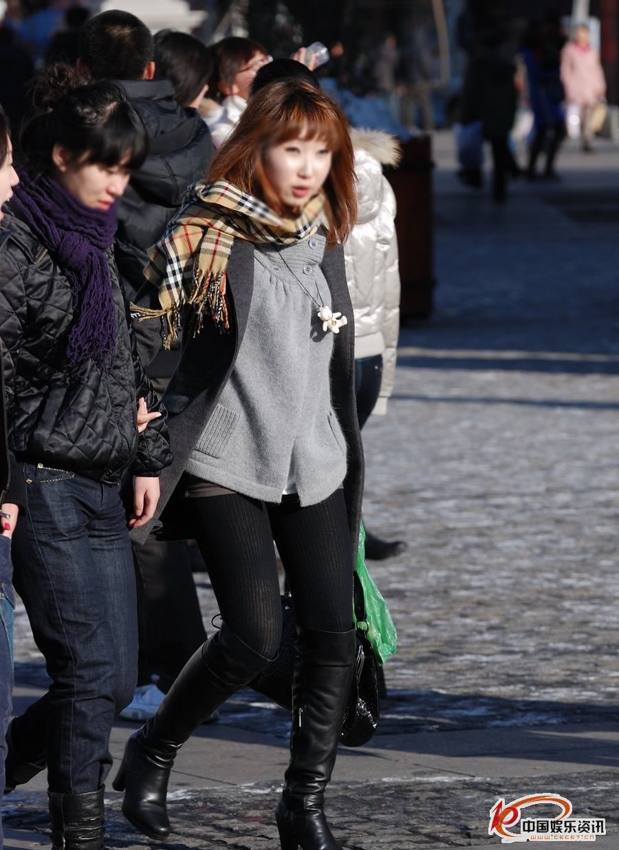 東風(fēng)路街拍的打底褲長(cháng)靴美女