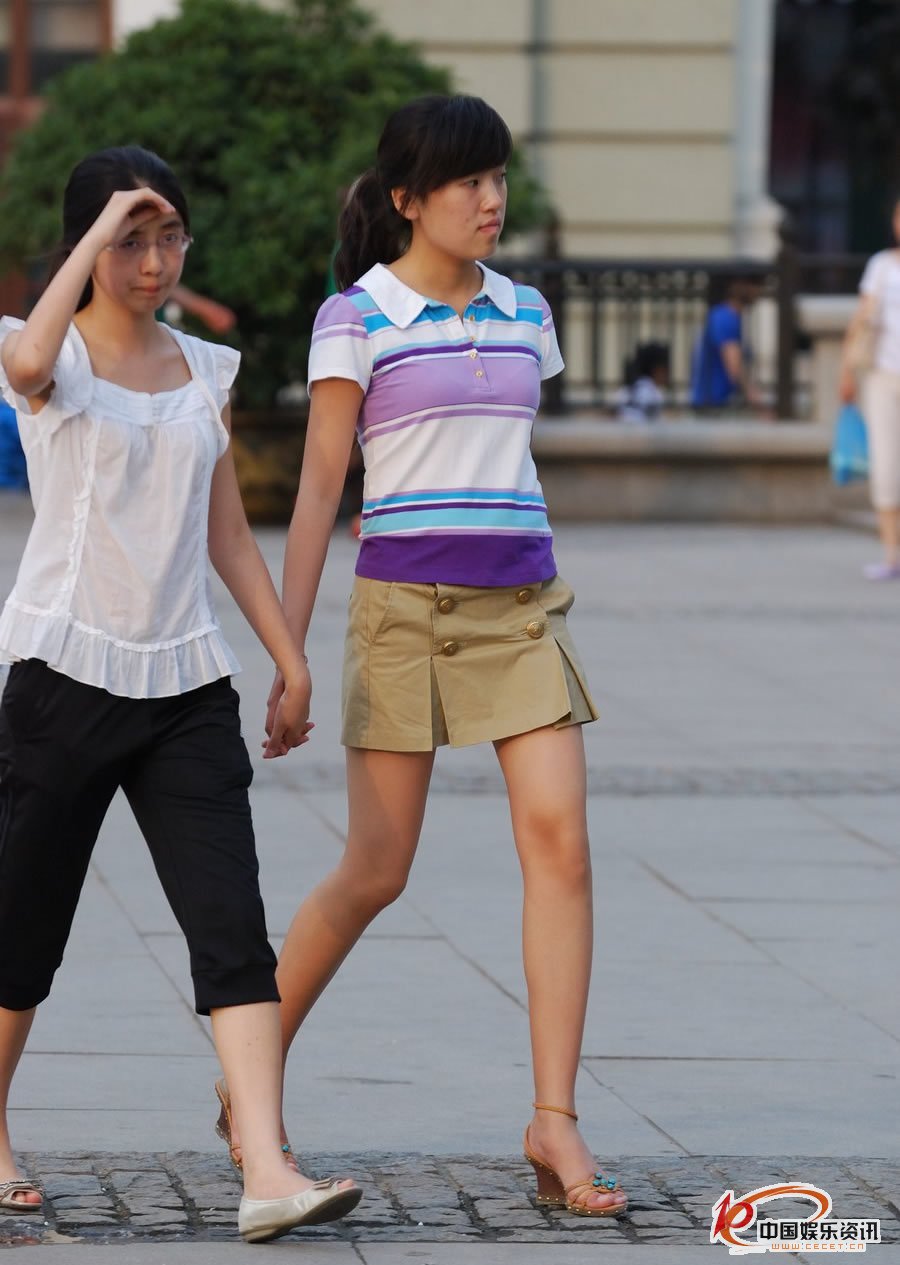 街拍的粉嫩長(cháng)細腿短裙女生
