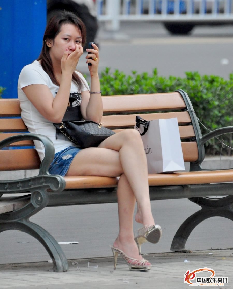 長(cháng)椅休息的美腿少婦肌膚白嫩紅潤