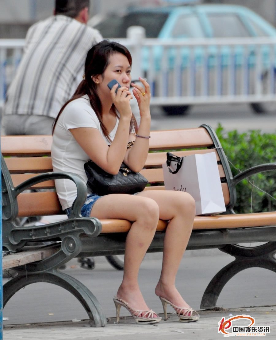 長(cháng)椅休息的美腿少婦肌膚白嫩紅潤