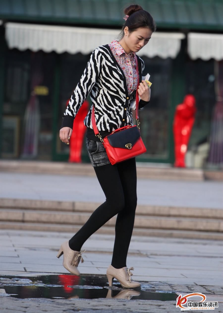 街拍的黑色打底褲樂(lè )觀(guān)大方美女