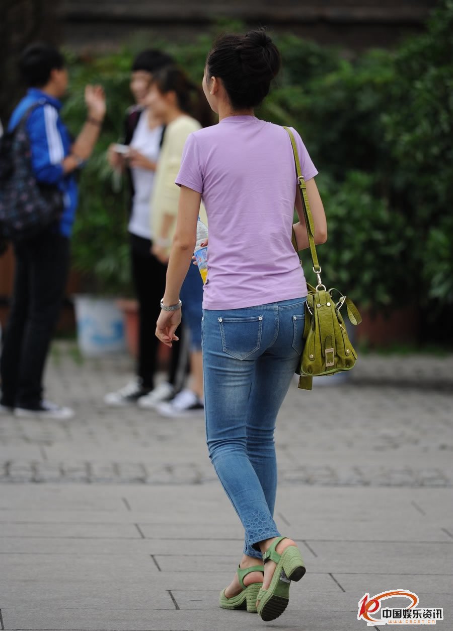 街拍的緊身牛仔褲苗條美眉