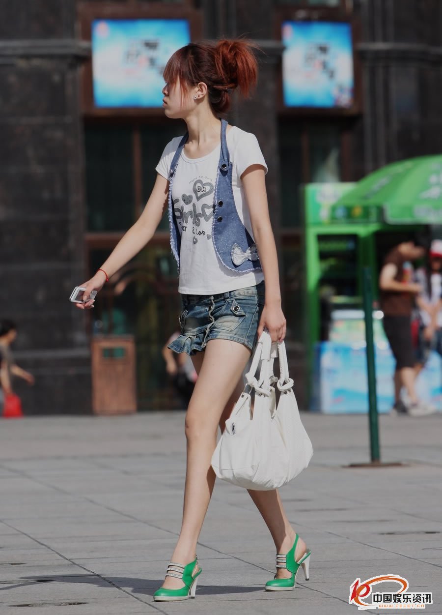 街拍的牛仔短褲裙長(cháng)細腿妹子