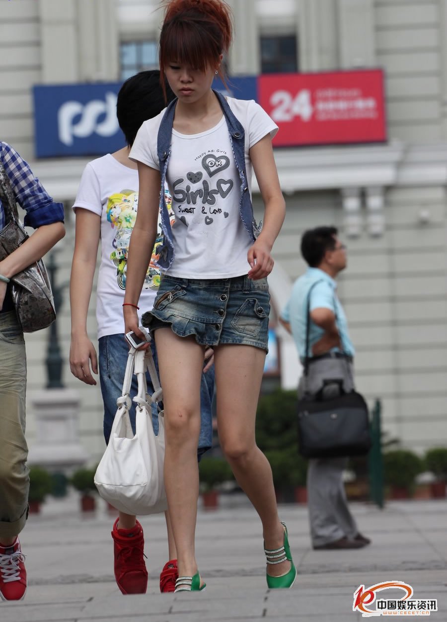 街拍的牛仔短褲裙長(cháng)細腿妹子