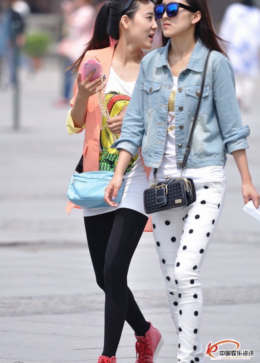 街拍的兩個(gè)穿著(zhù)時(shí)尚苗條美女