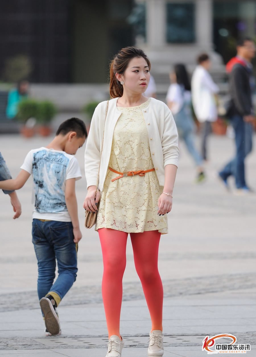 街拍的身材稍顯豐滿(mǎn)紅絲美女