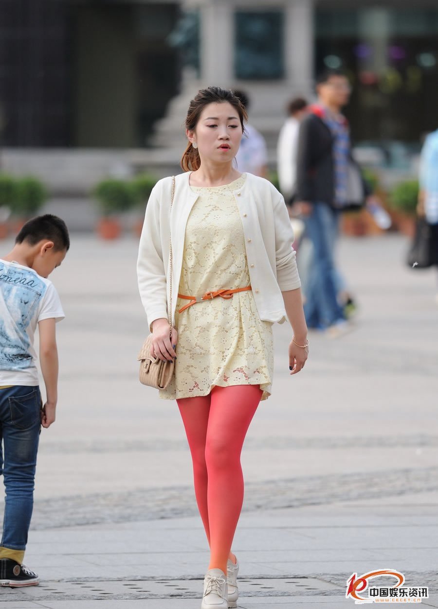 街拍的身材稍顯豐滿(mǎn)紅絲美女