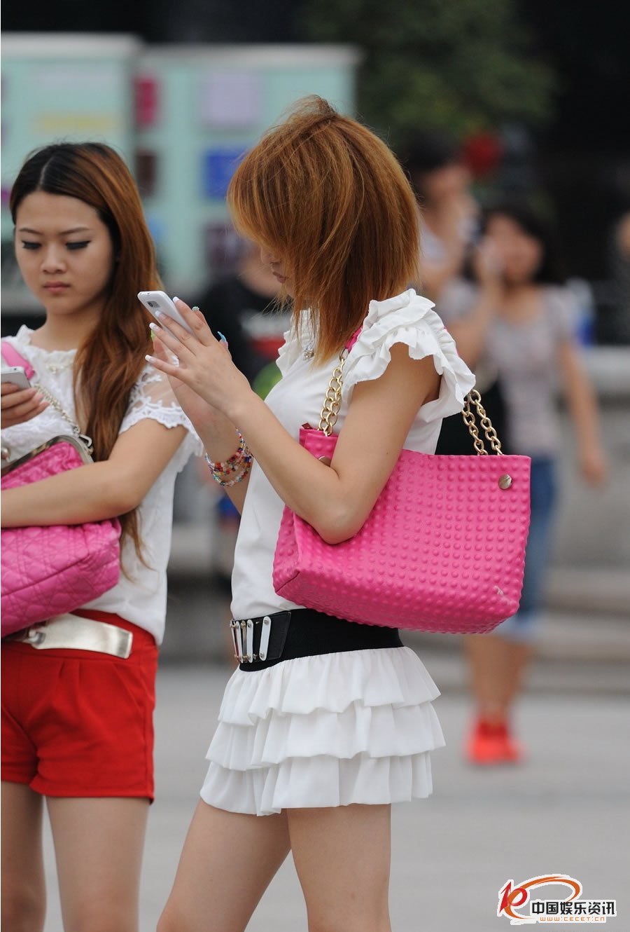 廣場(chǎng)街拍的兩個(gè)白皙美腿妹子
