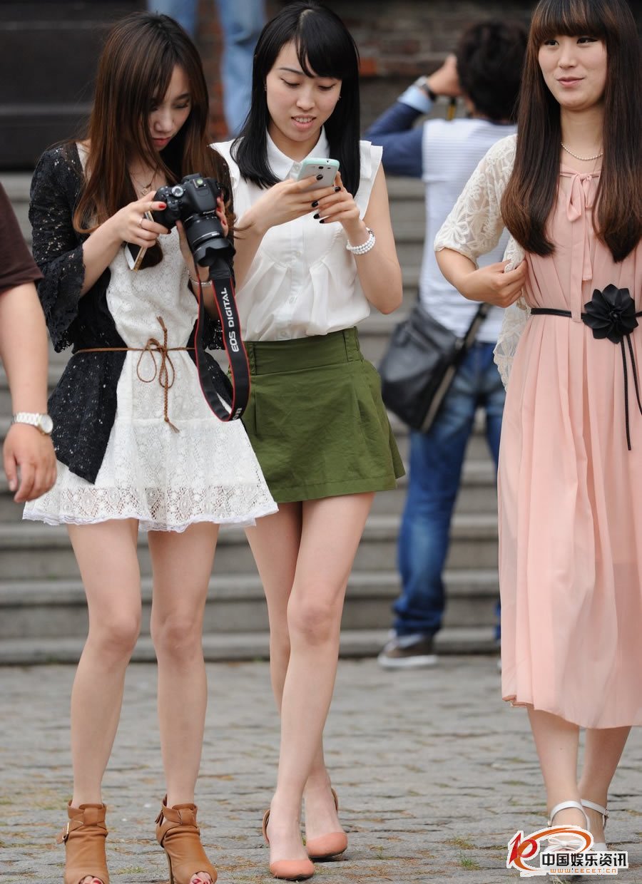 街拍的兩個(gè)短裙長(cháng)細腿美女
