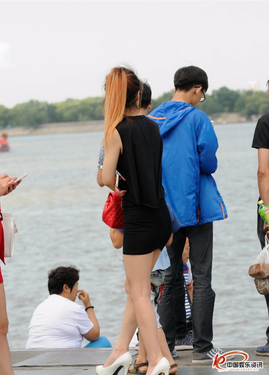 湖邊抓拍的包臀短裙墨鏡美女