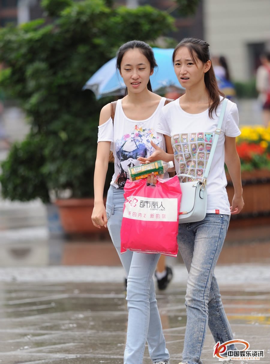 街拍的兩個(gè)牛仔褲馬尾女孩